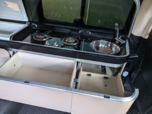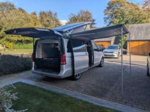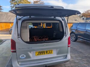 Original Equipment: Includes the original Mercedes-Westfalia camping table and both chairs stored in the tailgate.