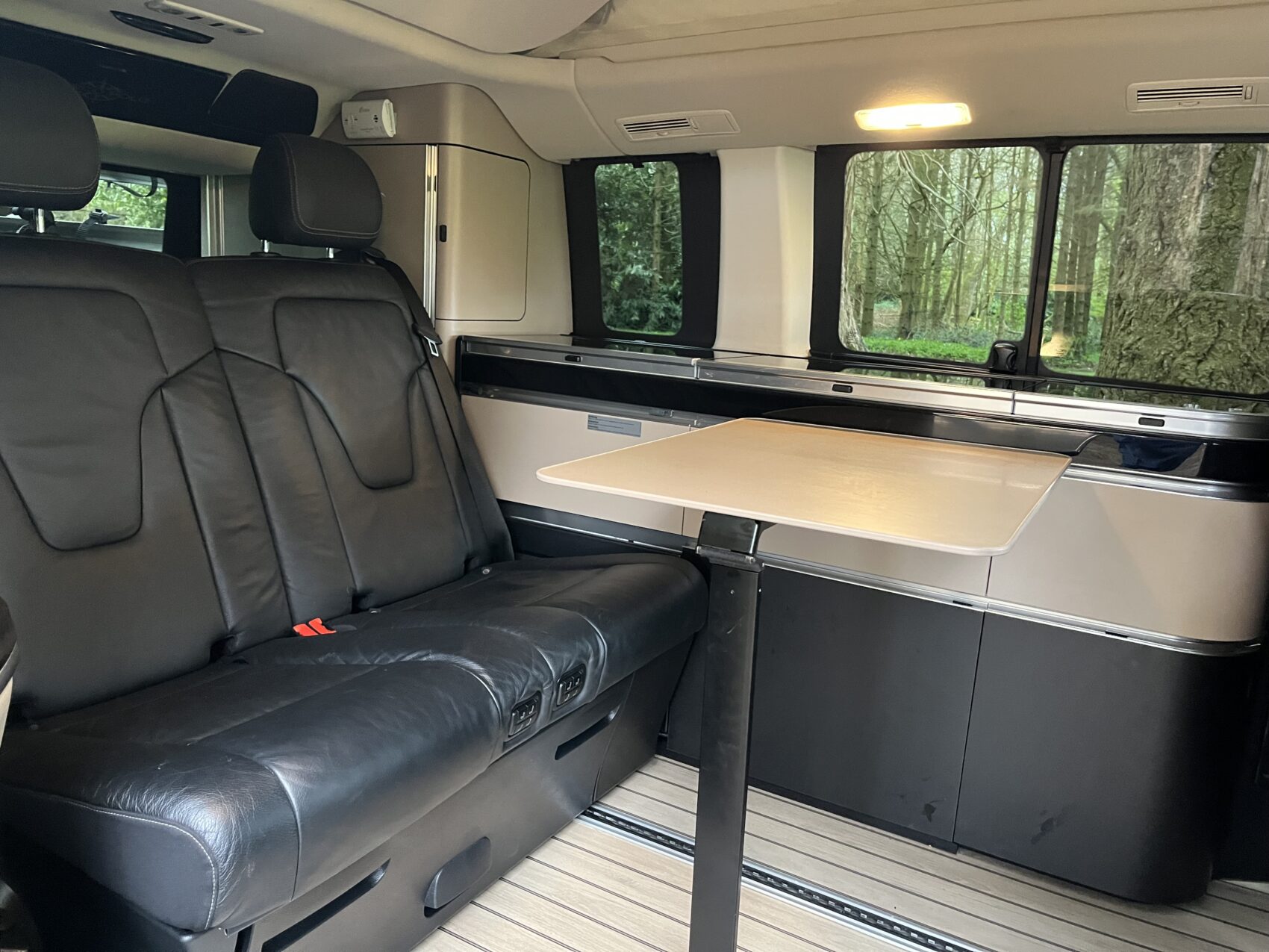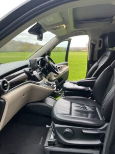 18in Alloy Wheels - 5 Twin Spoke Design - Painted in Tremolite Grey - High-Sheen Finish, ATTENTION Assist, Active Parking Assist with Reversing Camera, Additional Reading Lamps Above Rear Window, Adjustable Head Restraints for Driver and Front Passenger, Agility Control - Comfort Suspension, Agility Select with a Choice of Driving Modes - Comfort-ECO-Sport-Individual, Ambient Lighting - Three Different Colours, Anti-Theft Protection Package, Automated Headlamp Assist, Camping Table and Two Chairs in a Fabric Bag, Collision Prevention Assist, Cruise Control with SPEEDTRONIC Variable Speed Limiter, EASY-PACK Powered Tailgate, ESP - Electronic Stability Programme, Easy-Up Pop-Up Roof with Two Seater Bed, Electric Air Heater System - 1.2kW Output, Electric Parking Brake, Electric Sliding Doors - Right, Electronic Key - Chrome Surround, Exterior Mirrors - Electrically Folding Mirrors and Auto Dimming Exterior Drivers Mirrors and Rear-View Mirror, External Connections for Power and Fresh Water, First Aid Kit and Warning Triangle, Fold-Out Table, Footwell Lighting and Illuminated Handle in the Rear Compartment with Reading Light, Front Air Intakes with Twin Chrome Trim, Garmin Map Pilot Navigation System, Gooseneck Lights in Pop-Up Roof, Headlamps - LED Intelligent Light System with Integral LED Daytime Running Lamps, Heated Front Seats, High-Resolution 7in Multimedia Colour Display, Illuminated Front Door Sills with Mercedes-Benz Lettering, Kitchenette, Loudspeakers with FrontBass, Luxury Centre Console with Central Control Unit - USB Port - 12V Socket and Two Cup Holders, Mercedes Me Connect - Standard Services, Pre-Installation for Air Dock for Rear Plug and Play Accessory Kit, Roller Blinds, Seat Belts - Three-Point, Seat Occupancy Sensor - Front Passenger Seat, Service Console Including 230V Socket and USB, Sidewind Assist System, Split Tailgate - Separately Opening Rear Window with Chrome Handle, Sports Pedals in Brushed Stainless Steel with Rubber Studs, Status Display for Rear Seat Belts in Instrument Cluster, Stowage Box Above Rear Window, Sun Visors with Illuminated Vanity Mirrors, Swivelling Comfort Driver and Co-Driver Seat, THERMATIC 3-Zone Automatic Climate Control - Front and Rear, Tinted Rear Windows - Black, Trim - High-Gloss Black Piano Lacquer Look, Two Seater Luxury Couch with Bed Extension, Two Section Wardrobe with Sliding Door, Two USB Ports and an SD Card Slot in Centre Console, Tyre Pressure Monitoring System, Waste Water System, Yacht Wood Flooring in Rear Compartment, Full Carpets